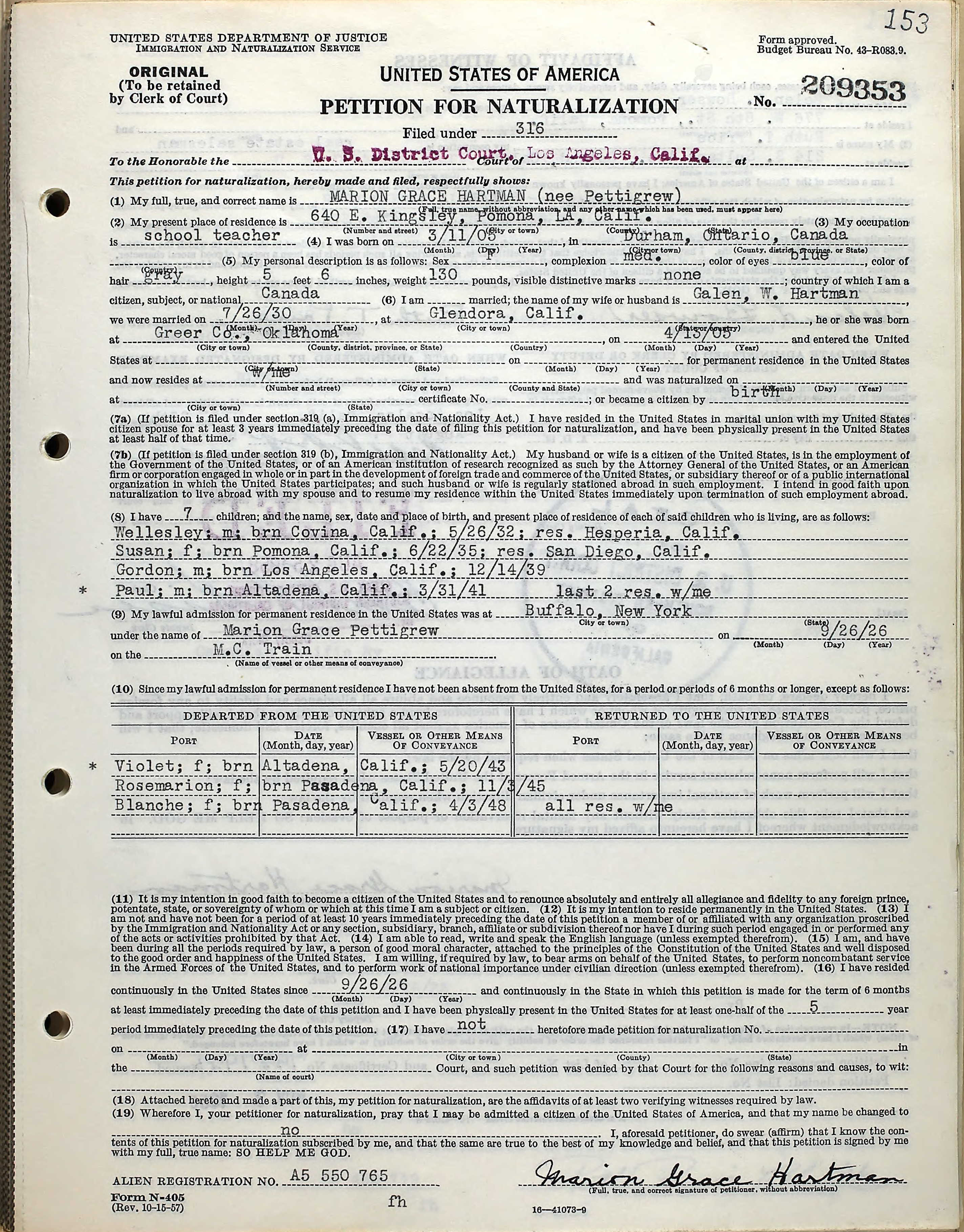 USA Petition for Naturalization (front)