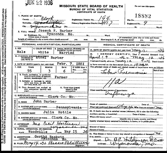 Forebears of Cecil E. Hartman and Joanna M. Barber