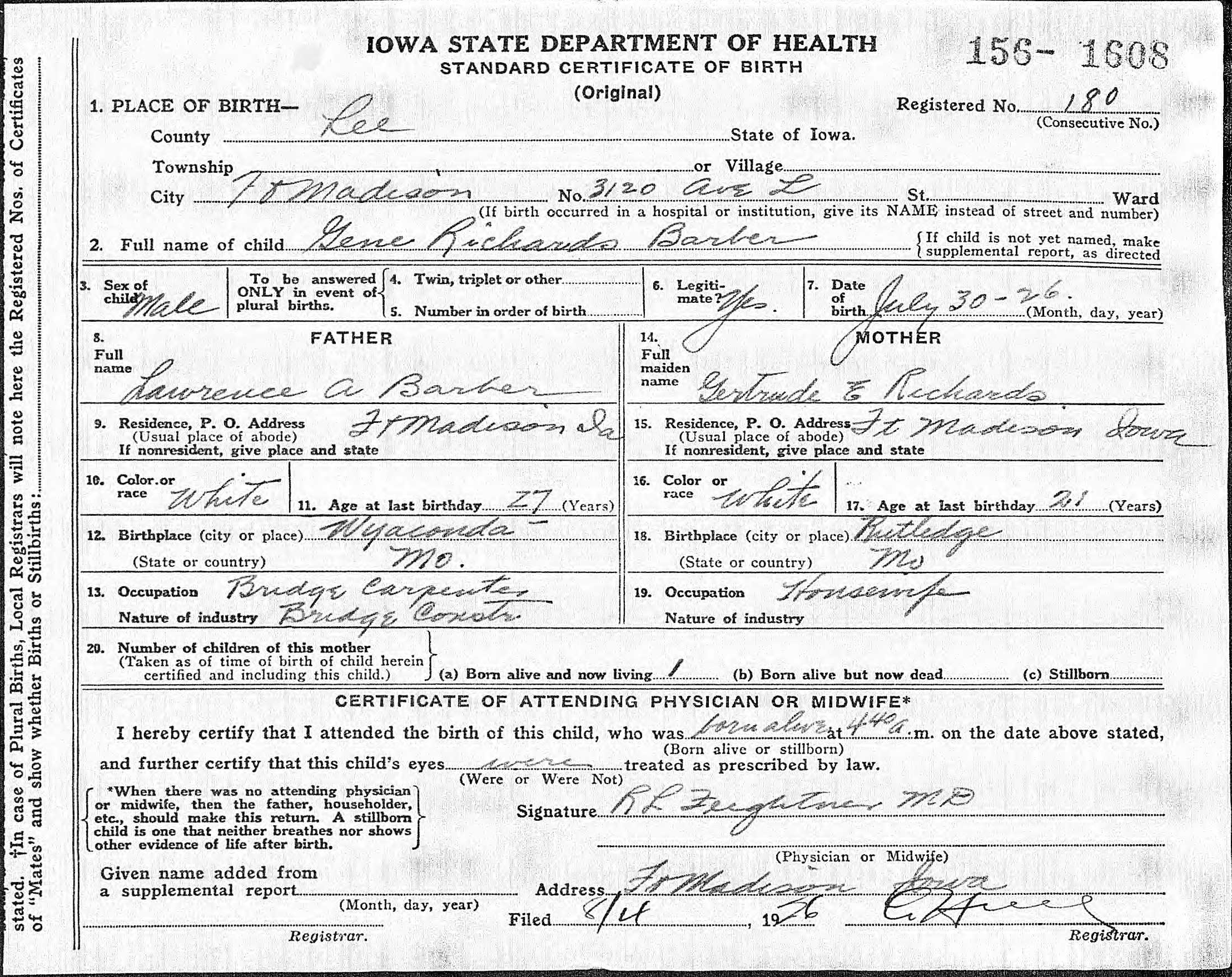 Forebears of Cecil E. Hartman and Joanna M. Barber