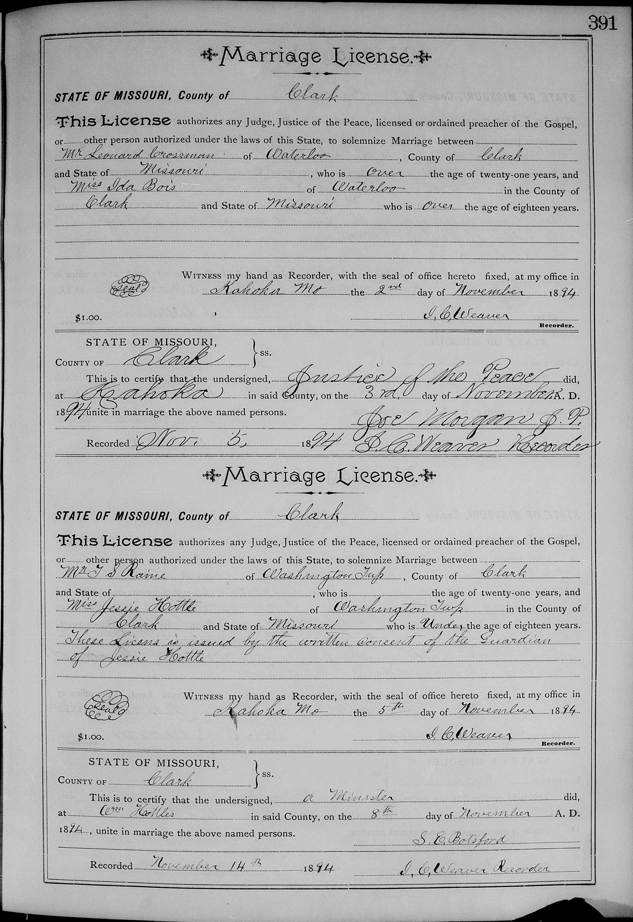 MARRIAGE RECORD FOR T. S. RAINE & JESSIE HOTTLE