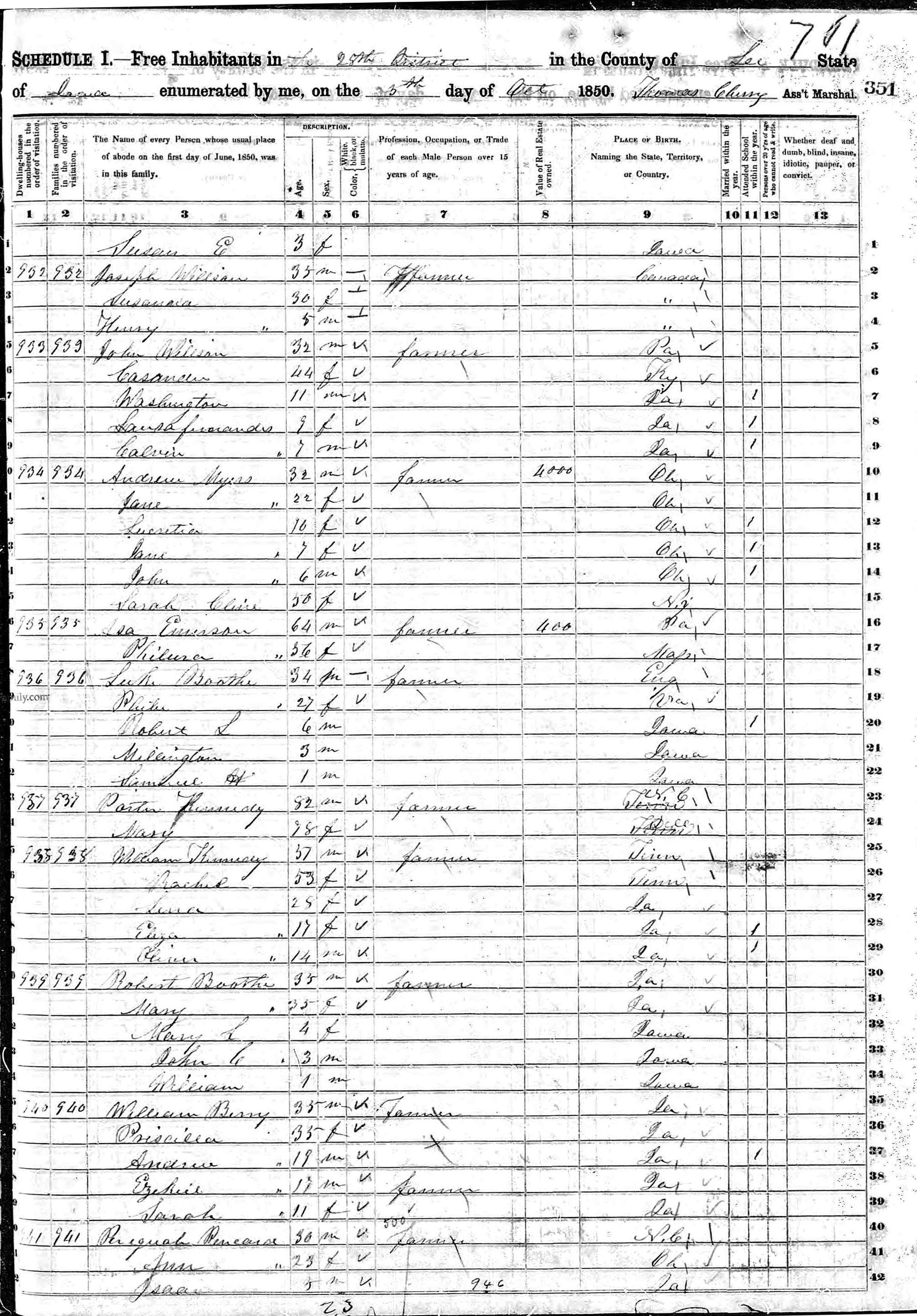 1850 US Census, Iowa, Lee County