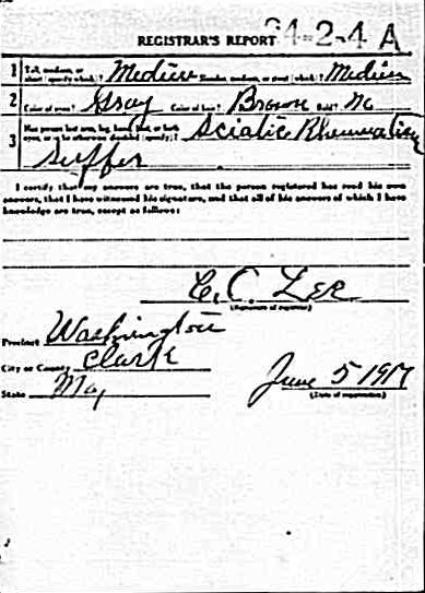 WWI Registration Card back