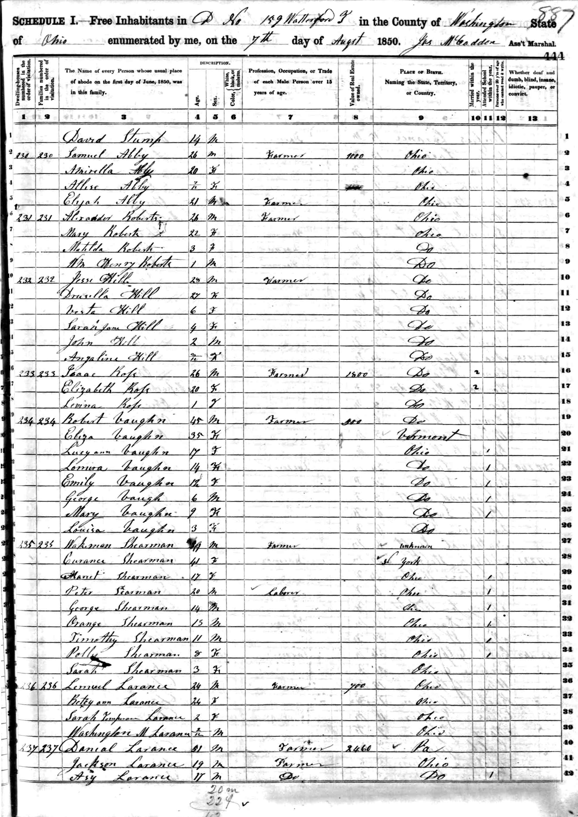US Census: 1850, Watertown Township, Washington County, OHIO