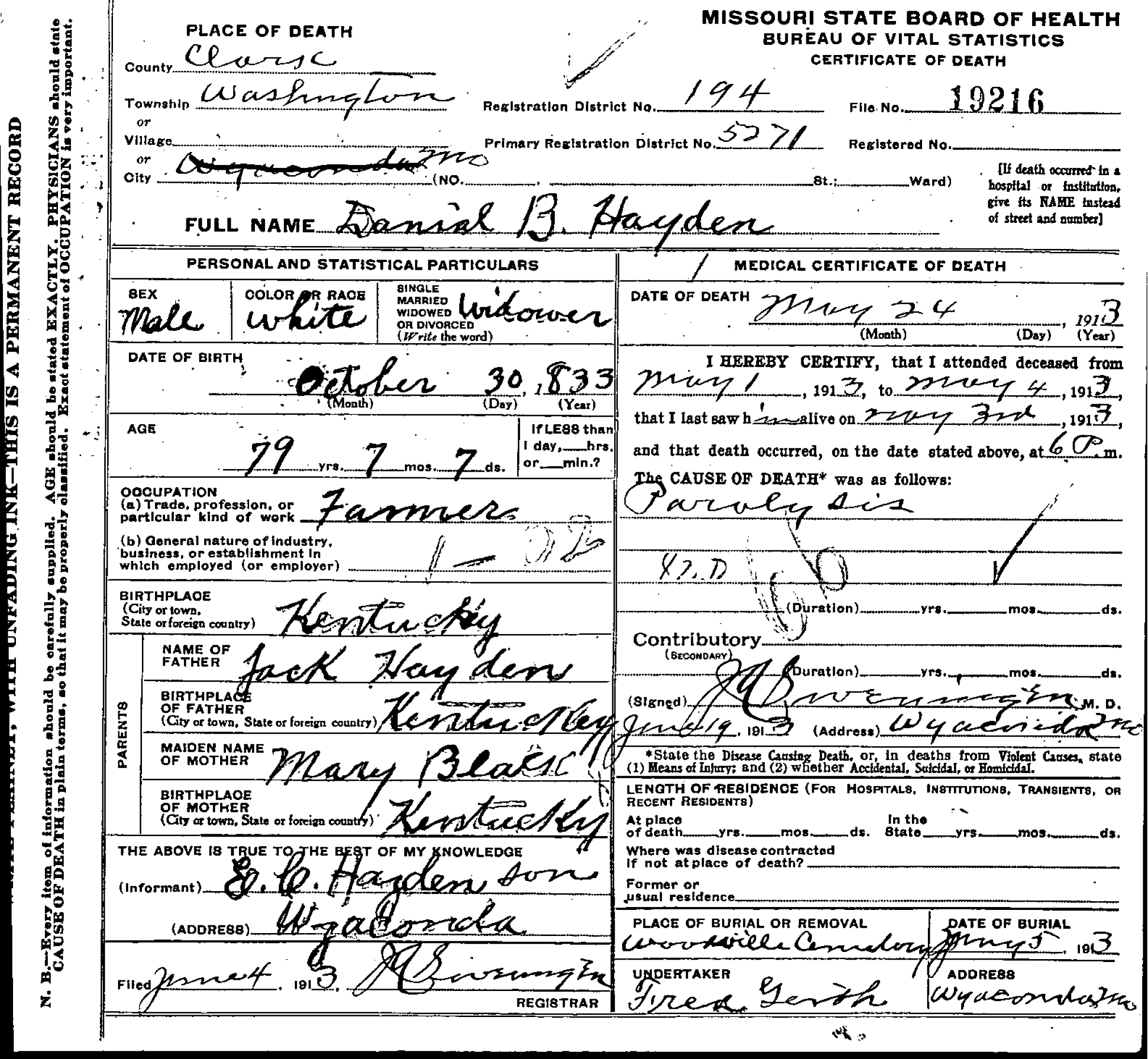 Forebears of Cecil E. Hartman and Joanna M. Barber