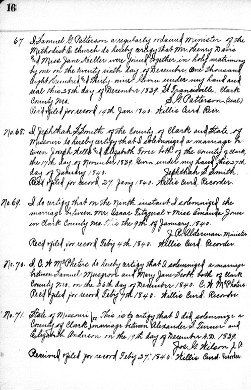 Record no. 68 for marriage of Joseph Wells and Elizabeth Foree