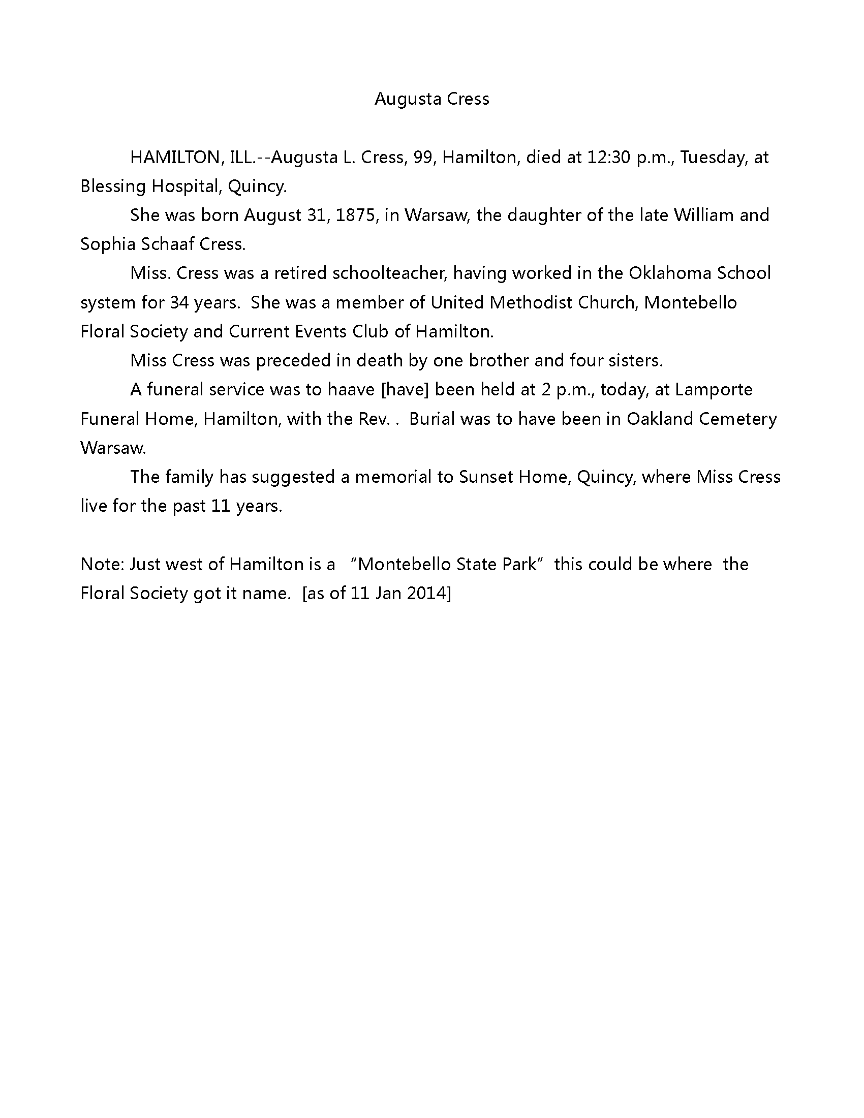Forebears of Cecil E. Hartman and Joanna M. Barber
