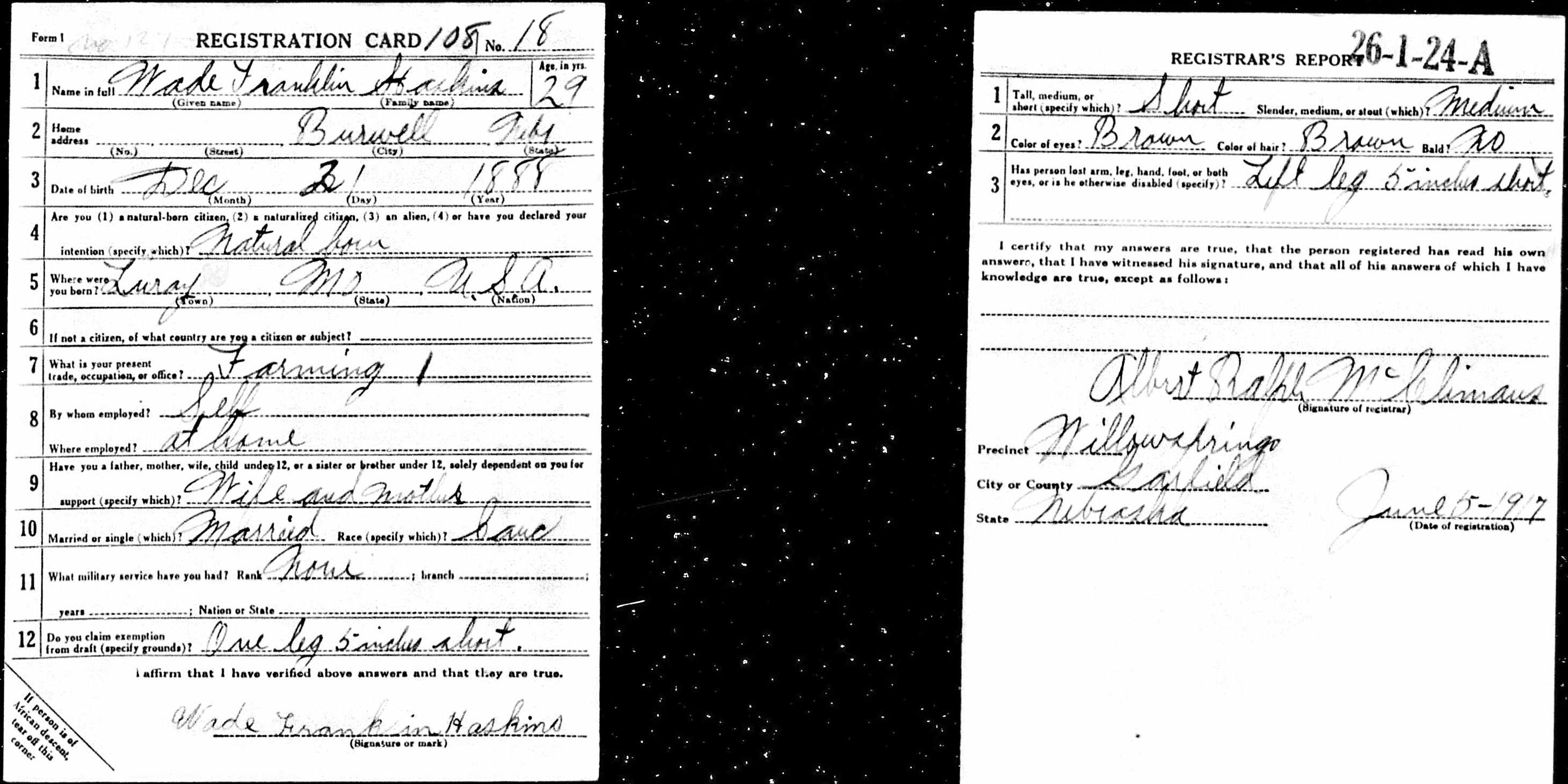 WWI Draft Card for