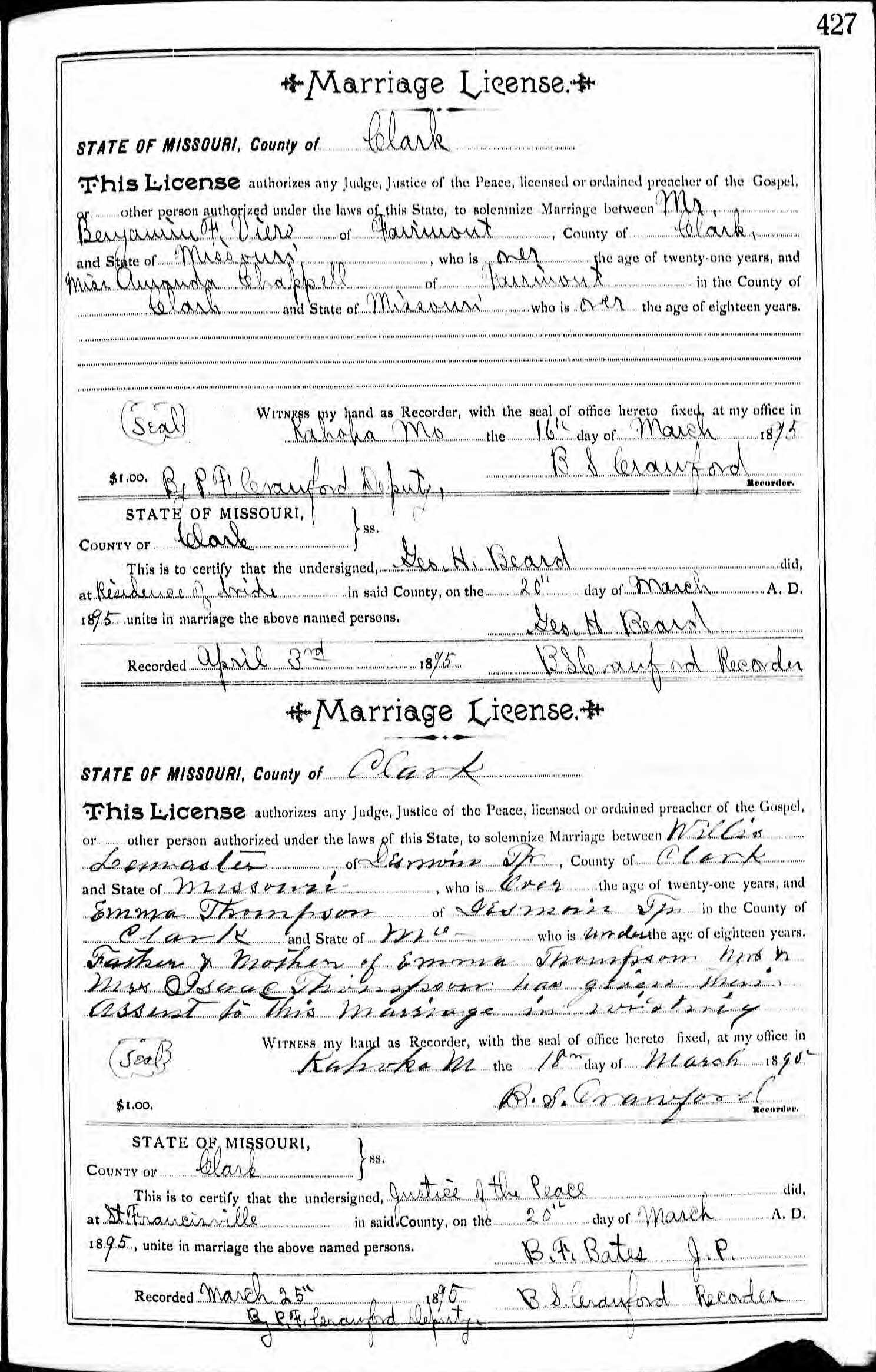 Forebears of Cecil E. Hartman and Joanna M. Barber