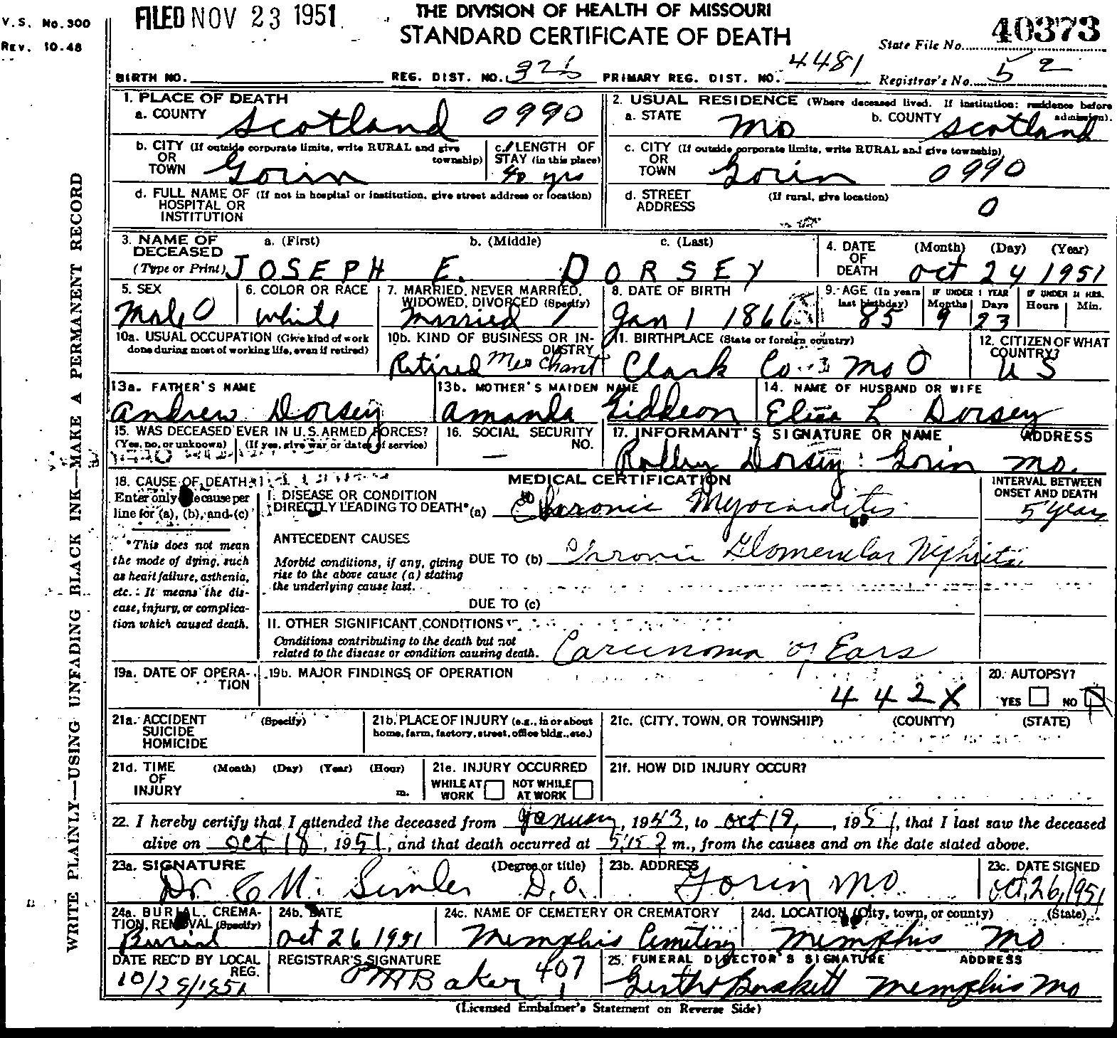 Death C ertificate for