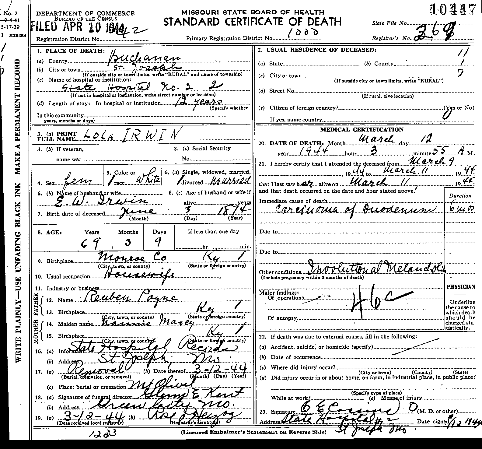 Forebears of Cecil E. Hartman and Joanna M. Barber