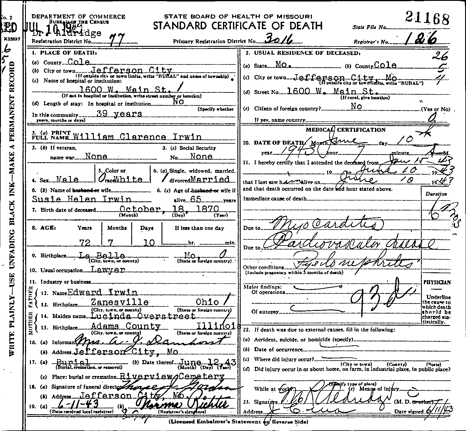 Forebears of Cecil E. Hartman and Joanna M. Barber