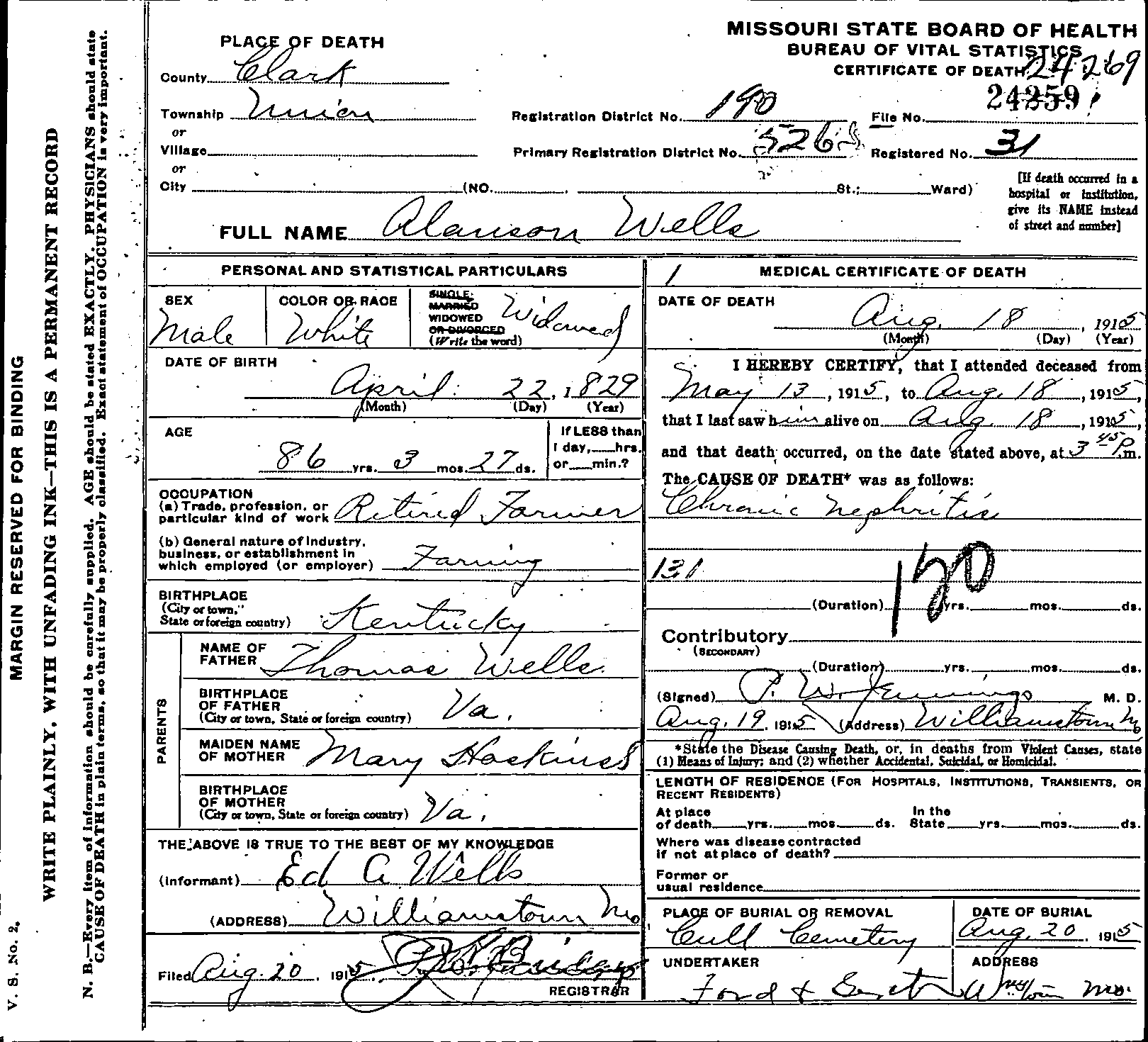 Death Certificate for