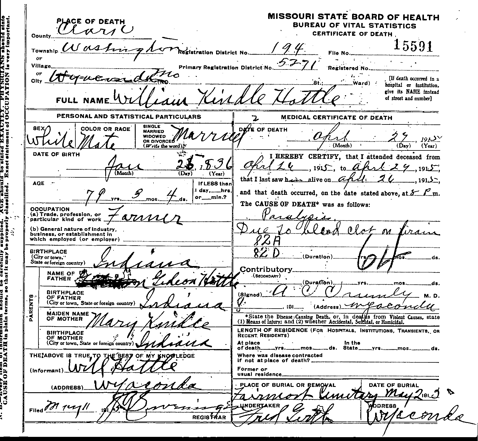 Missouri Death Certificate for