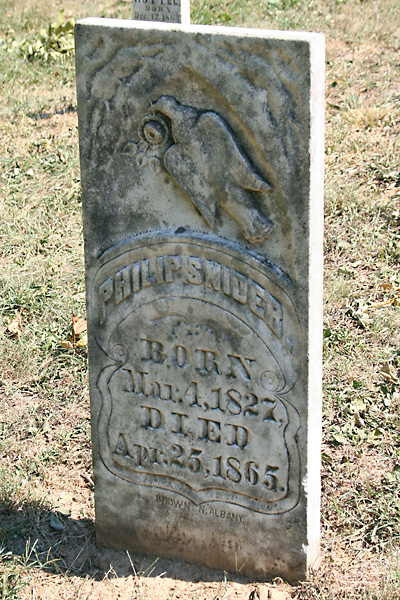 Headstone for Philip P. Snider by RL (Bob) Nielsen (#47036655) My photos are licensed under a Creative Commons Attribution-NonCommercial-NoDerivs 3.0 Unported License. In other words, you may copy any of the photos I post on Find-a-Grave as long as you 1) cite me as the source of the photo(s) and 2) do not edit the photos in any manner. Thanks.