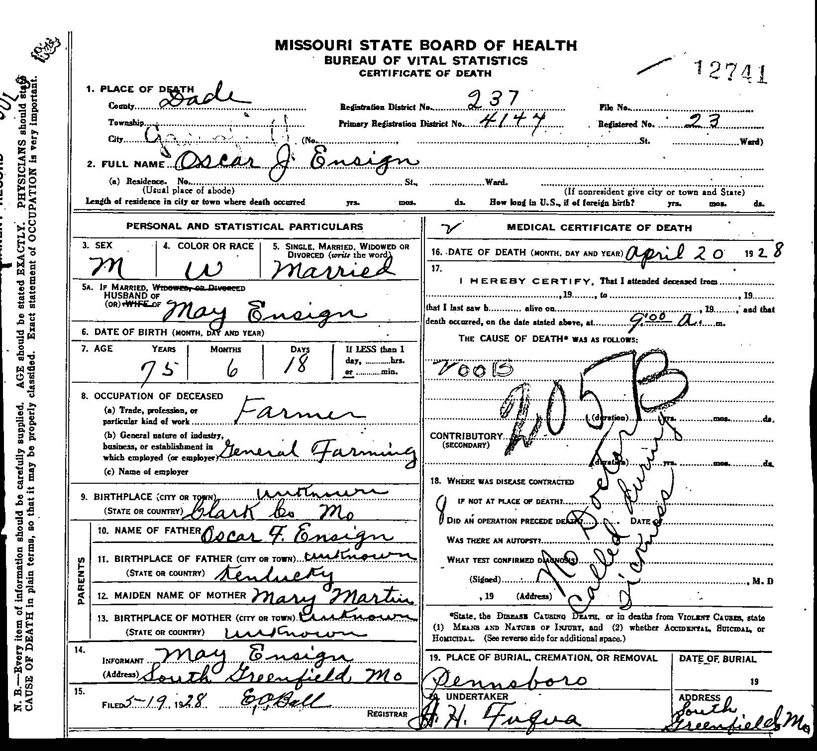 Death Certificate for