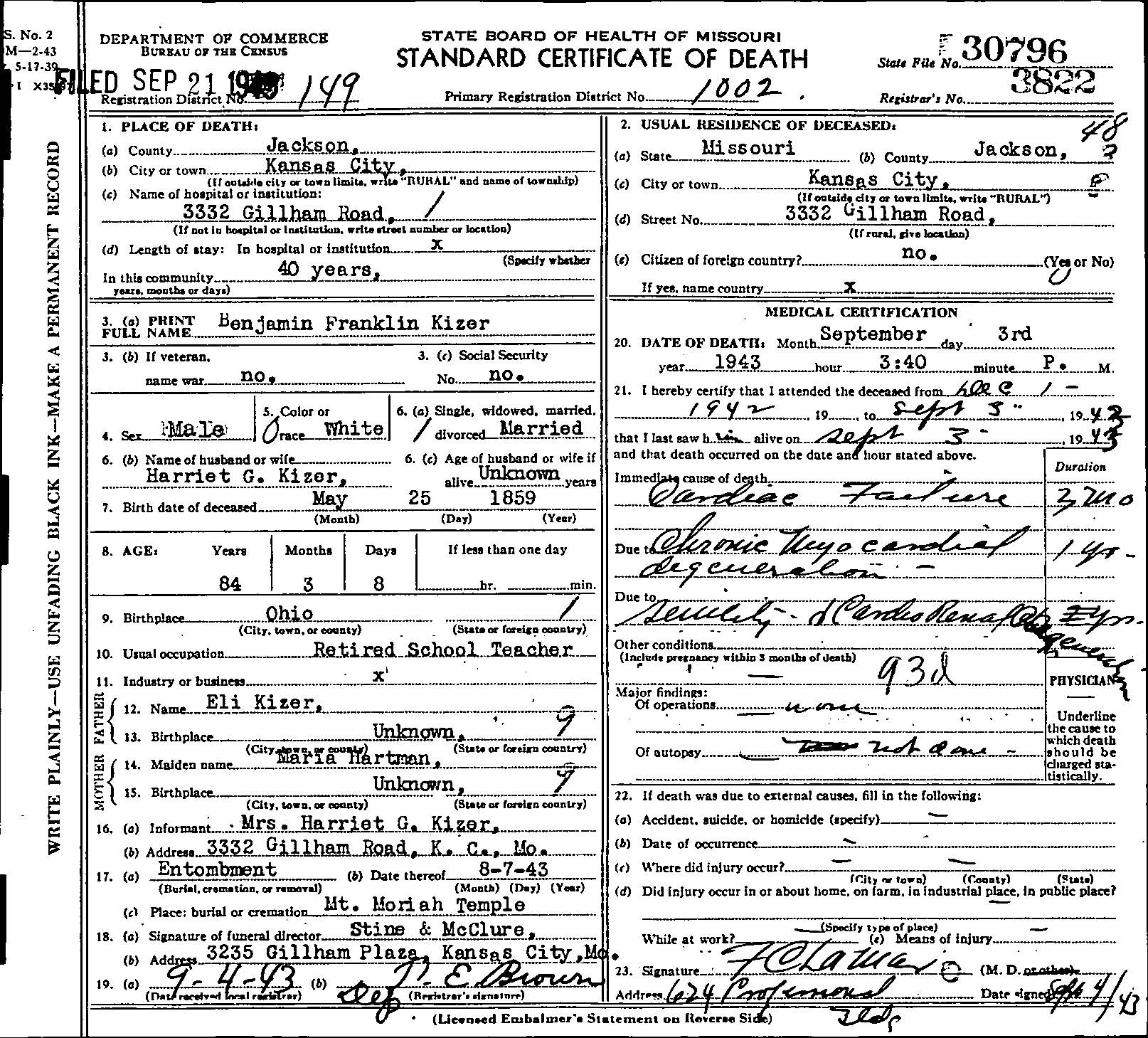 Forebears of Cecil E. Hartman and Joanna M. Barber