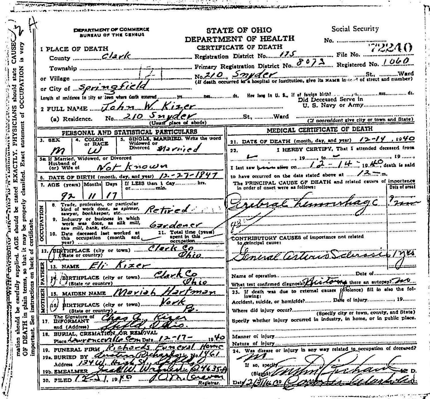 Forebears of Cecil E. Hartman and Joanna M. Barber