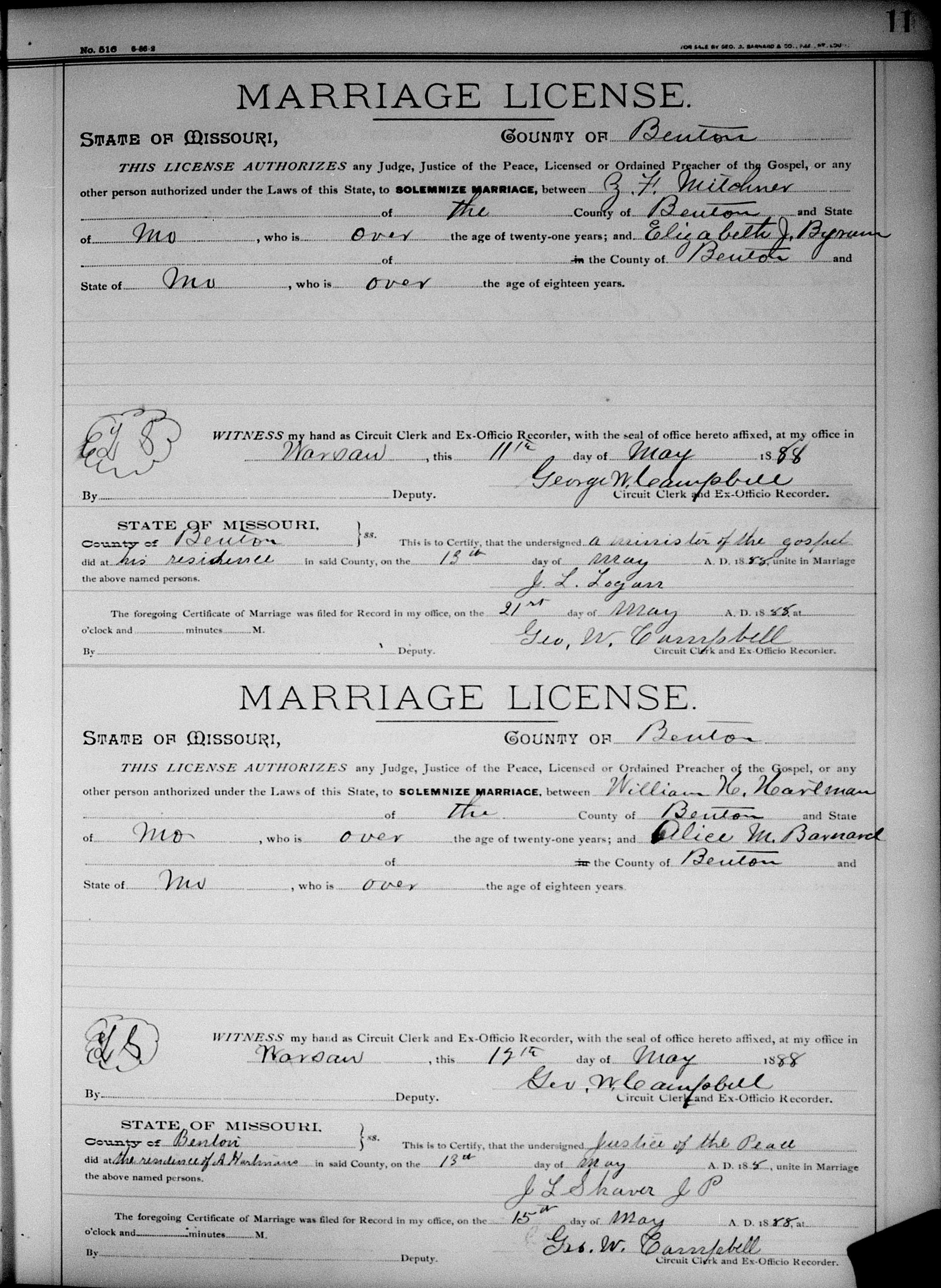 (Benton County) Missouri, County Marriage, Naturalization, and Court Records, 1800-1991