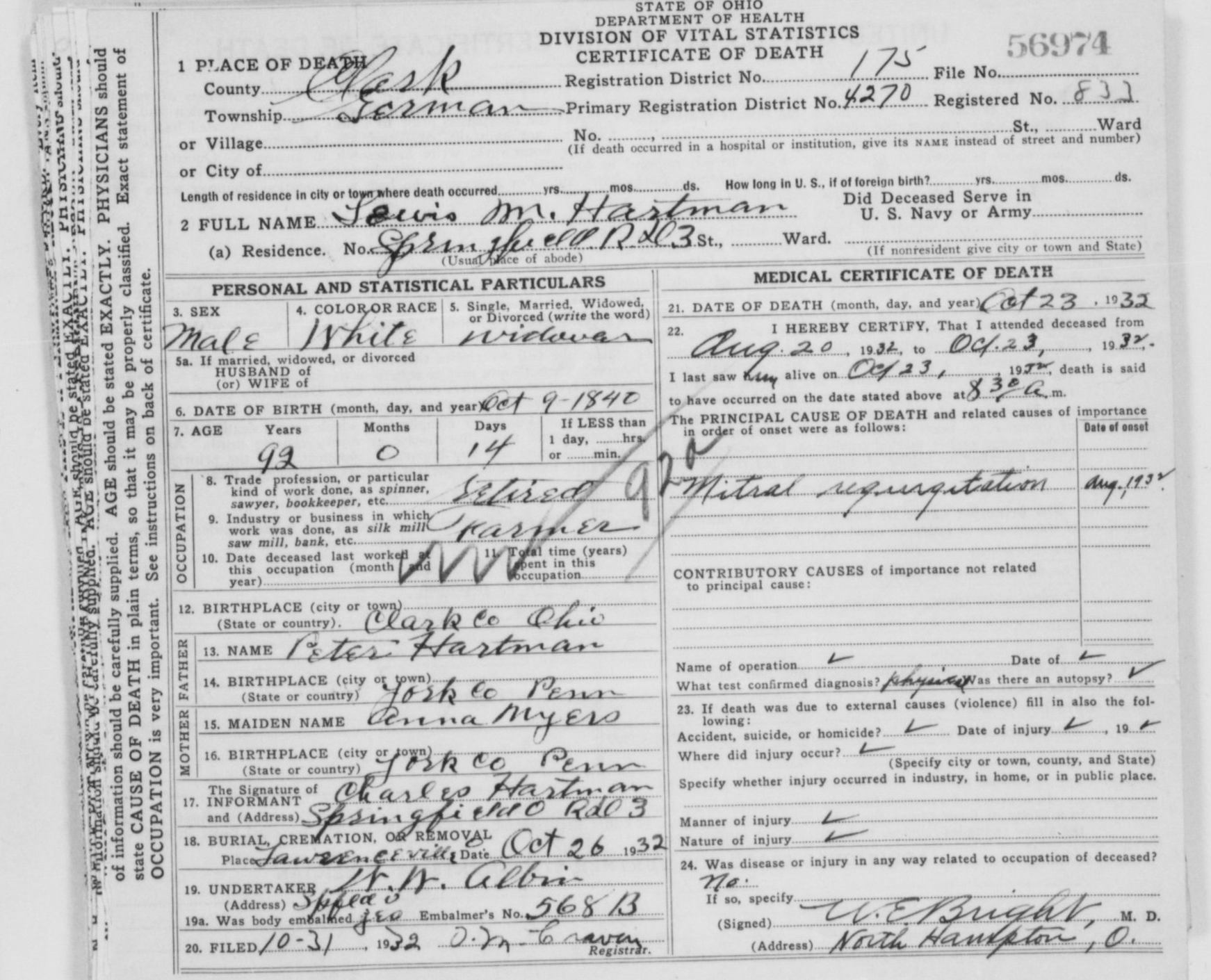 Forebears of Cecil E. Hartman and Joanna M. Barber