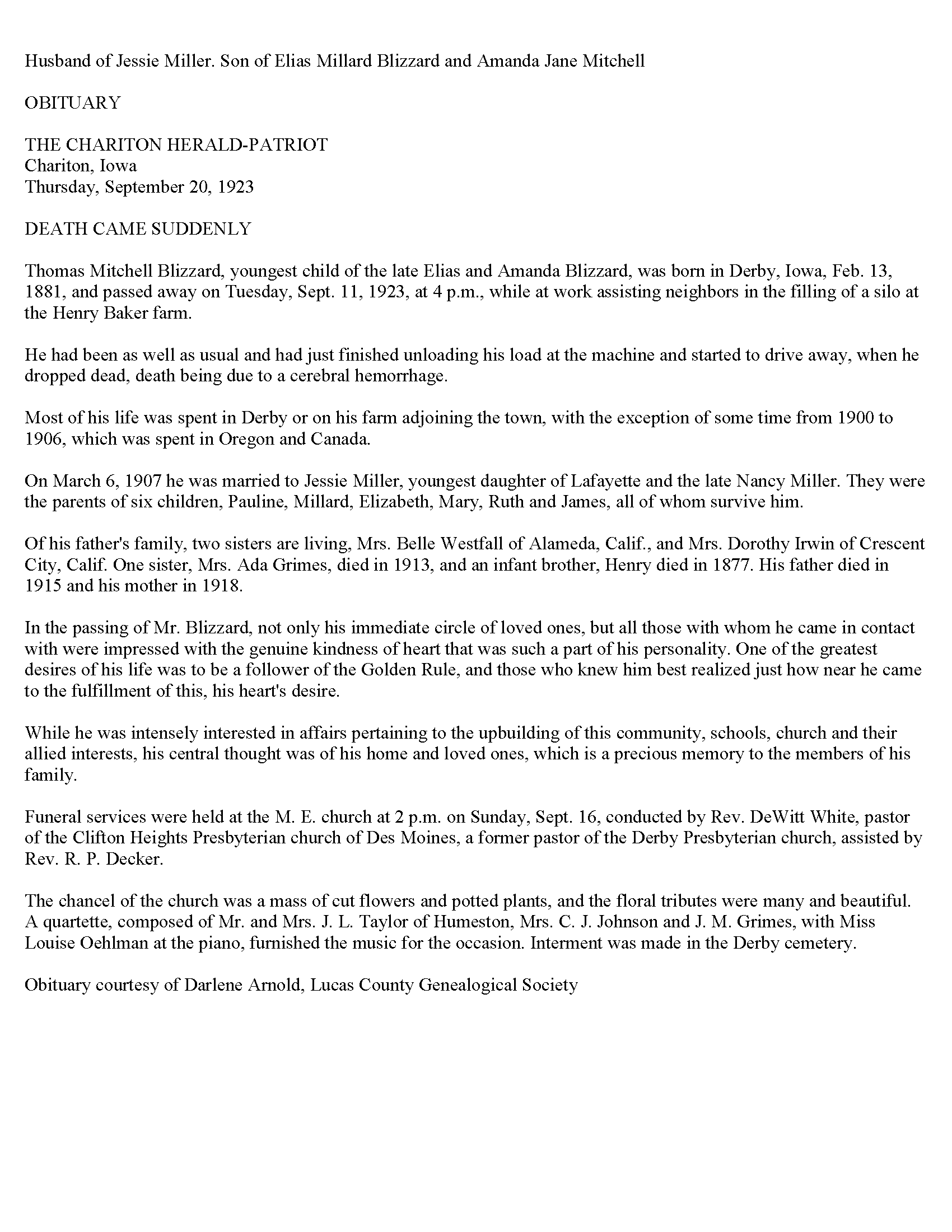 Obituary of Thomas Mitchell "Tom" Blizzard