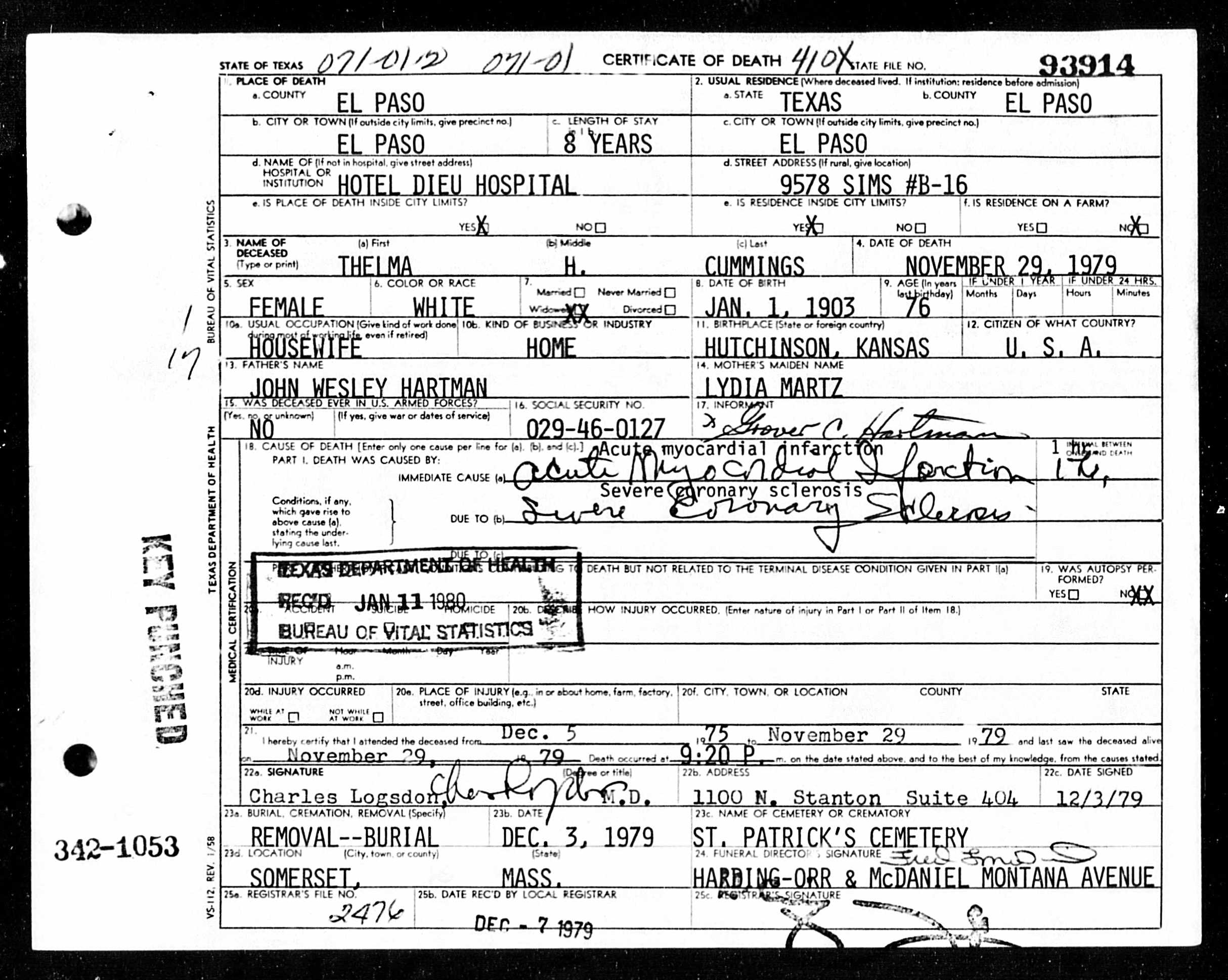 Forebears of Cecil E. Hartman and Joanna M. Barber