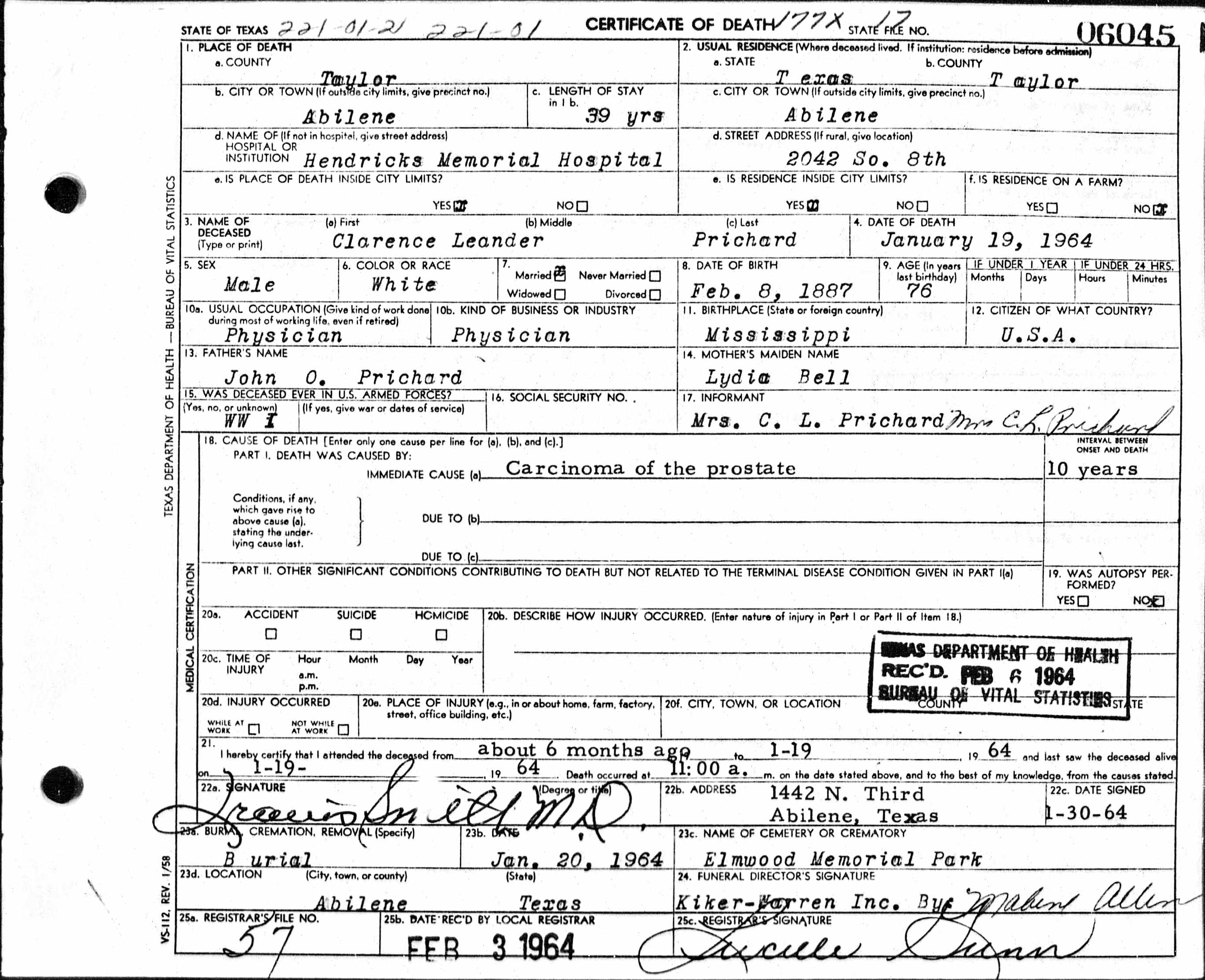 Texas Death Certificate